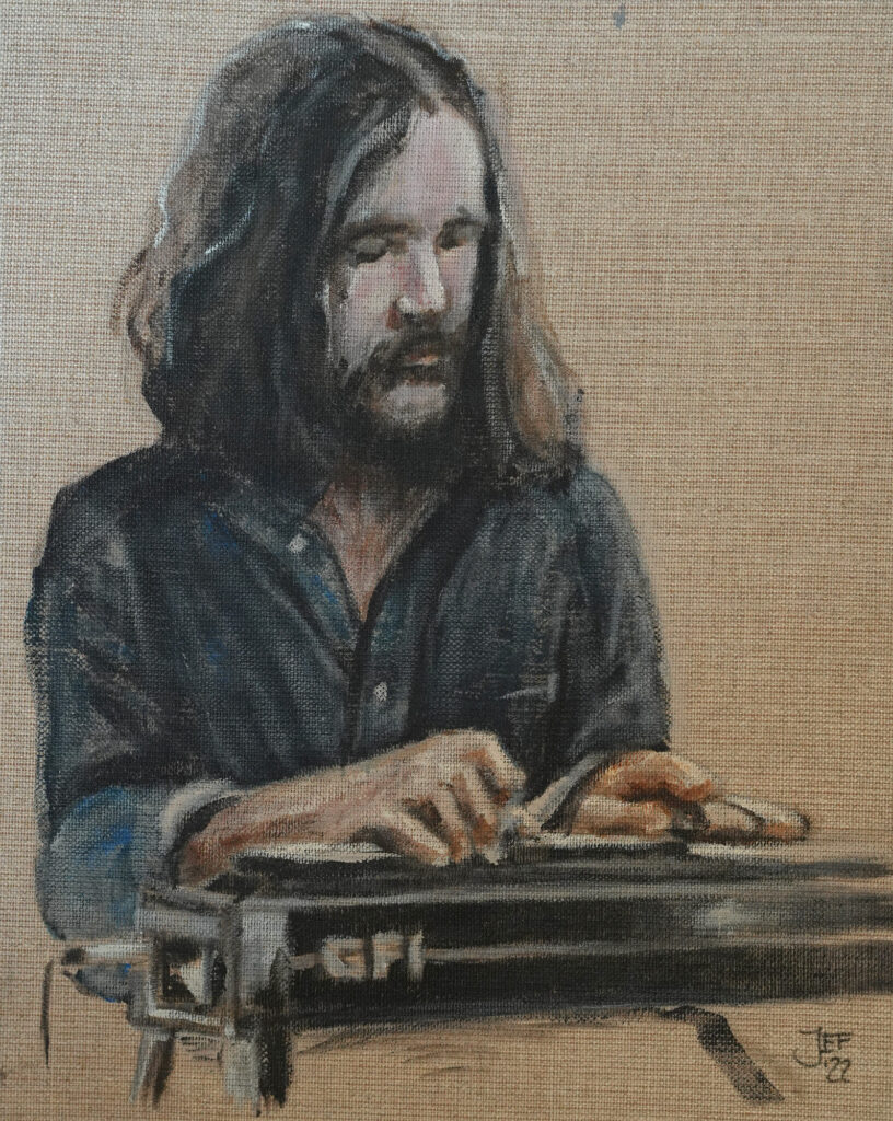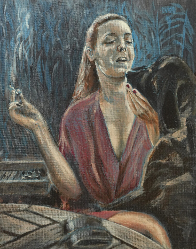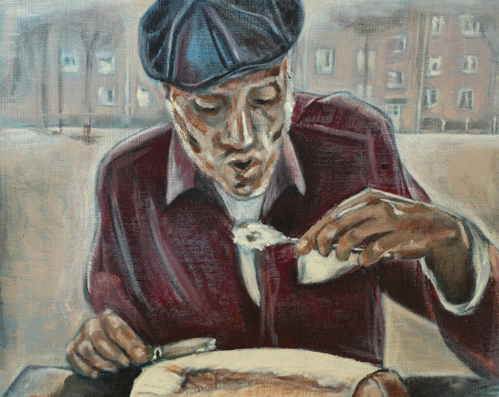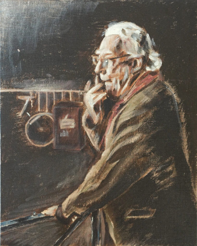 Möglich ist hier natürlich das klassische Portrait, also der vollkommene Fokus auf das Gesicht des Portraitierten. Hier kann ich die Mimik besonders detailliert herausarbeiten, daran habe ich große Freude. Beinahe noch lieber male ich allerdings die sogenannte Halbfigur, also ein Bildnis des gesamten Oberkörpers von der Hüfte an. Die Körperhaltung, die typische Pose sagt soviel über einen Menschen aus und komplettiert das Bild. Auch kann ich den Portraitierten hier in seiner „natürlichen Umgebung“, mit seinem liebsten Haustier, einem Musikinstrument, bei Tisch abbilden – die Möglichkeiten sind endlos. Gerade die kleinen, alltäglichen, beiläufigen Situationen interessieren mich hier besonders, denn dort kommt am ehesten der wirkliche, ungekünstelte Mensch zum Vorschein.
